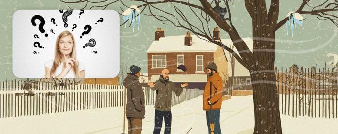 Pildil on näha kolm klaasipuhastajat, kes kogunesid talvel õue puu alla ja vestlesid. Keegi vestluskaaslastest ei märganudki, et üks neist on tõsises ohus.